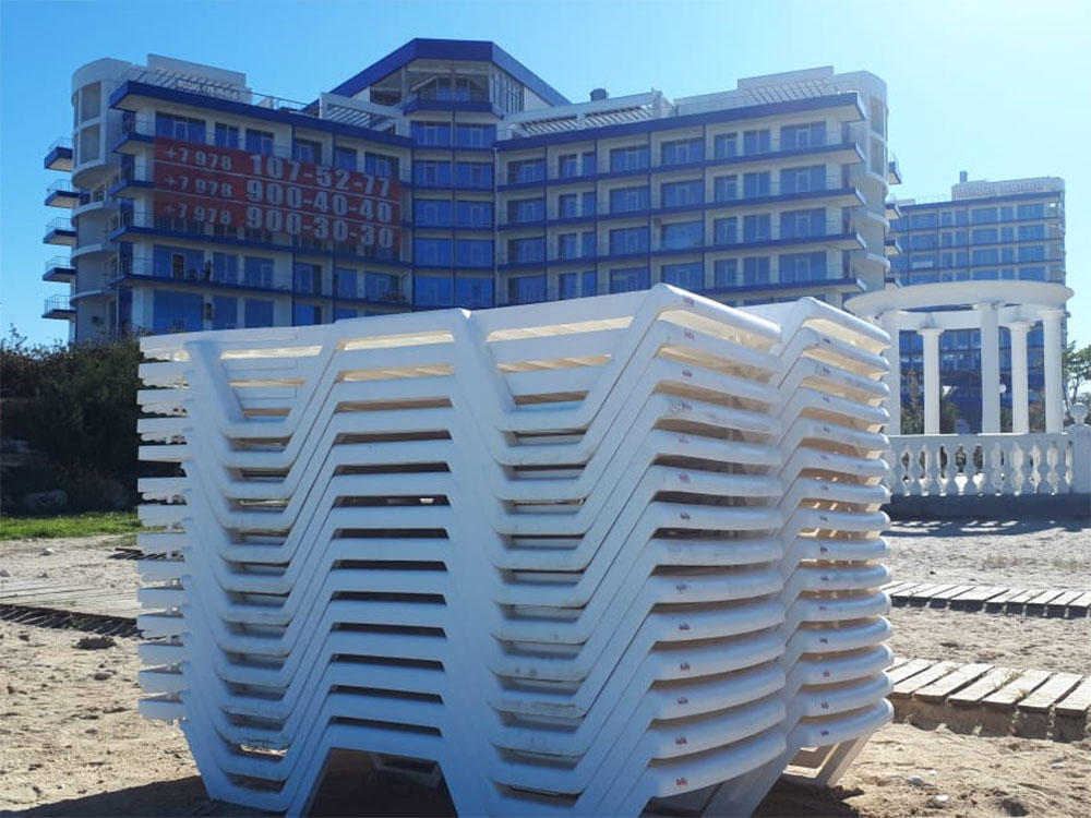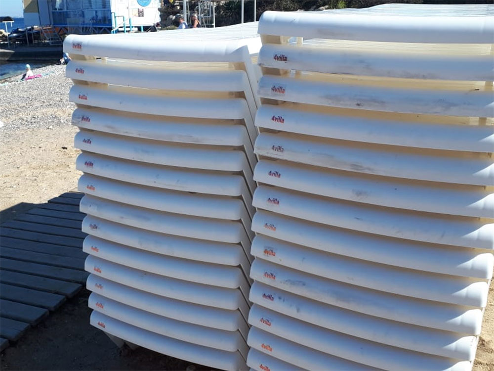 Сверхпрочные пластиковые шезлонги 4VILLA были поставлены на самый лучший пляж города Севастополя (Отель Аквамарин) в феврале 2018 года. По итогу первого сезона ВСЕ шезлонги остались целыми! Ни одного повреждения, которое могло бы помешать использовать шезлонг в следующем сезоне.